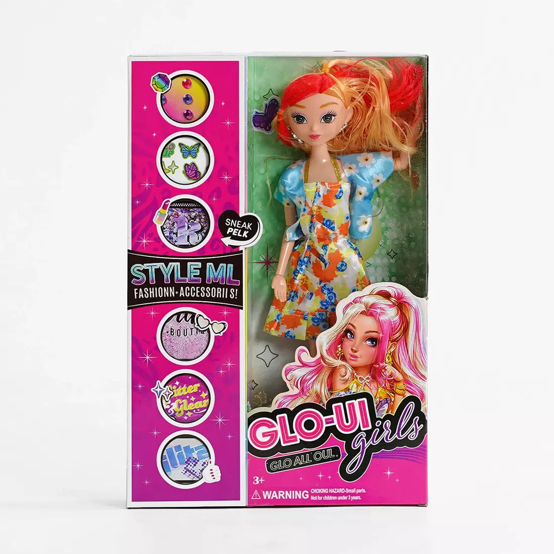 Розкішна модниця із серії “Glo-ui girls” - це не просто іграшка, а справжня ікона стилю і моди. Її витончене тіло і яскраве волосся привертають увагу, а її одяг і різноманіття аксесуарів дають змогу створювати нескінченну кількість модних образів. Лялька одягнена в ультрамодну сукню з оригінальним дизайном і стильними принтами, які підкреслюють її граціозність і вишуканість. Головною особливістю набору виступає великий вибір аксесуарів, які дають змогу створювати різні стилі та настрої. Іграшкова красуня стане ідеальним компаньйоном для будь-якої маленької модниці. Вона буде не тільки джерелом натхнення, а й незамінним помічником у створенні свого власного стилю та іміджу! Особливості: - сучасний трендовий дизайн милої ляльки; - приємний, доброзичливий вираз обличчя; - оригінальний дизайн кутюрної сукні; - стильна зачіска; - довге шовковисте волосся; - актуальні додаткові аксесуари; - наліпки, крейда для створення сучасного модного образу; - лялька має рухливі ручки та ніжки, що зробить гру з нею різноманітнішою; - безліч точок артикуляції дозволяють міняти та приймати різні пози; - дає змогу розвивати дитячу фантазію і творчий потенціал, а також навчитися поєднувати кольори та стилі, створюючи унікальні модні образи; - зріст ляльки - 29 см.