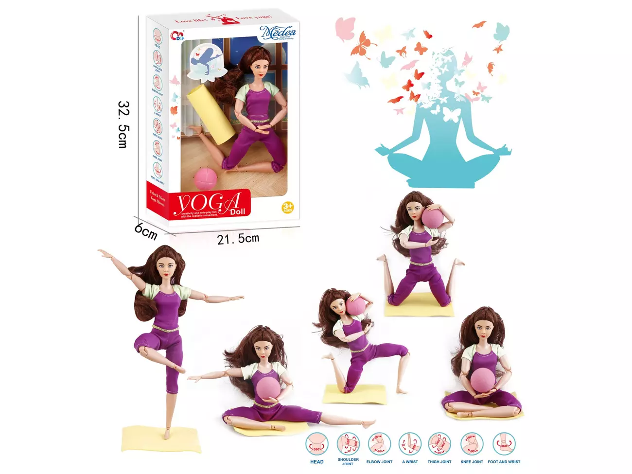 Лялька йогиня з килимком і м'ячем, розмір 29 см
