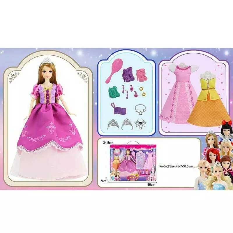Лялька з аксесуарами 91062-1 (24/2) висота 30 см, діадеми, сережки, намиста, сумочка, гребінець, сукні, туфлі, в коробці