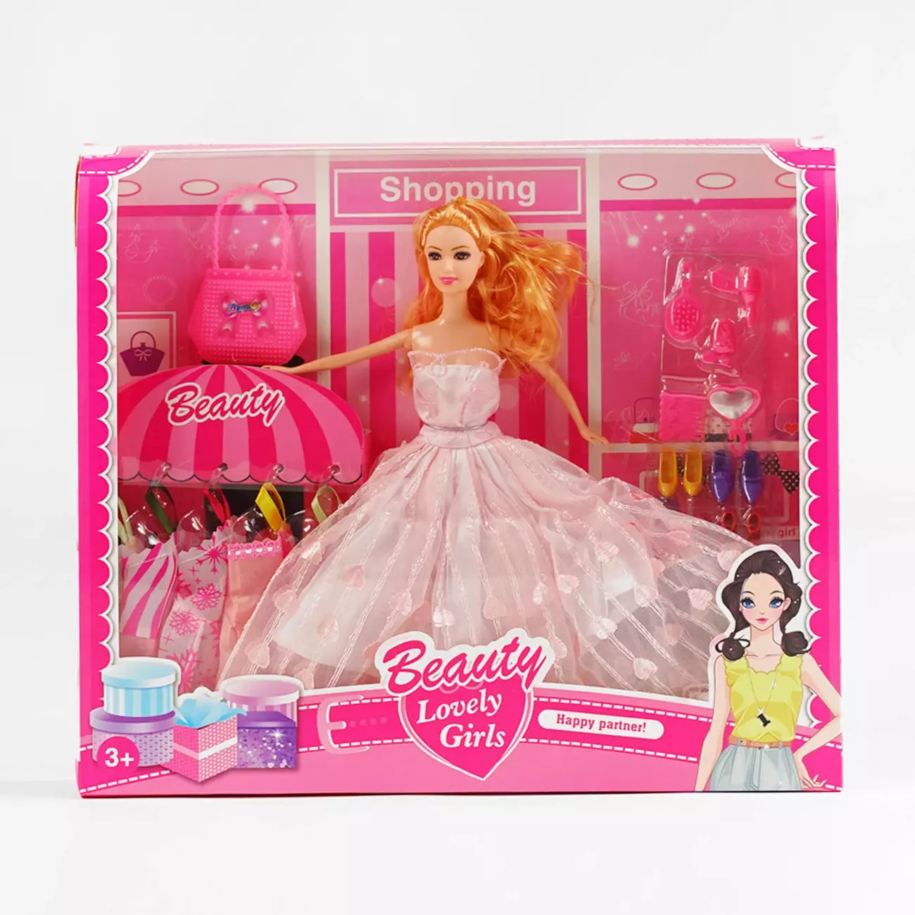 Лялькова красуня запрошує дівчинку провести з нею день шопінгу! У неї є все для того, що б підібрати приголомшливі образи та просто весело провести час. Коробка виконана у вигляді магазину, в якому ви знайдете рейл із кольоровими сукнями, полки зі взуттям та додаткові аксесуари для створення зачіски. Довгонога лялька з пишним волоссям стане справжньою подружкою та компаньйоном у тематичній грі. Особливості: - набір включає ляльку та додаткові ігрові елементи; - лялька має довге шовковисте волосся; - вдягнена у вечірню сукню; - голова лялька виконана з гуми, а тіло - з пластику. Комплектація: - лялька; - рейл із сукнями; - полиця із взуттям; - сумочка; - люстерко; - заколки для волосся; - фен; - щітка для волосся; - парфуми.