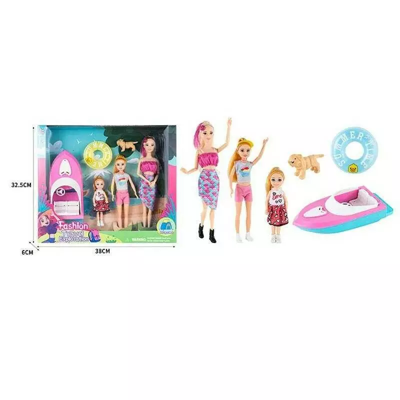 Лялька з аксесуарами ST 5616-8 (36/2) 3 ляльки, висота 30 см, лодка, круг для плавання, собачка, в коробці