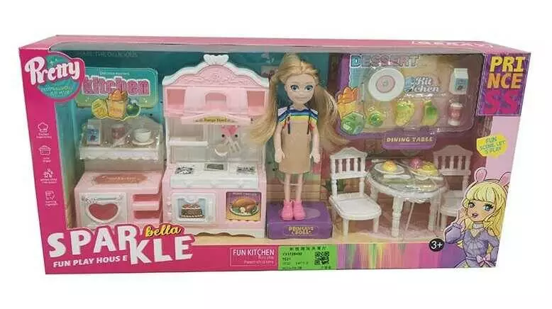 Лялька з меблями 7021 (32) висота 13 см, кухня, кухонні меблі, аксесуари, імітація продуктів, в коробці