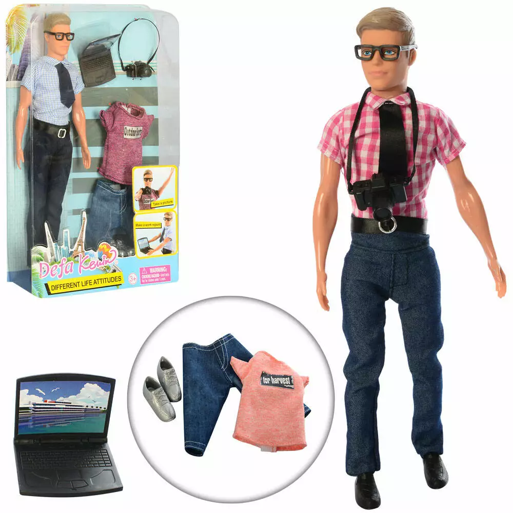 Лялька з вбранням DEFA 8385 Кен, фотоапарат, ноутбук, 2 види, бліст., 23-33-6 см.