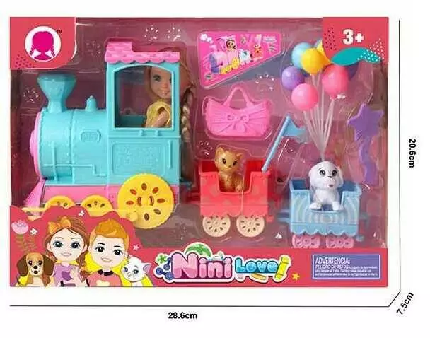 Ляльковий набір 55821 (60/2) ""Весела подорож"", потяг з вагонами, лялечка, 2 фігурки улюбленців, аксесуари, в коробці