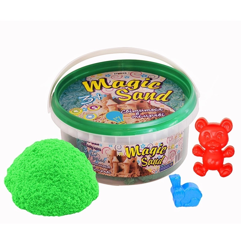 Magic sand зеленого кольору, що світиться у темряві, у відрі 0,350 кг
