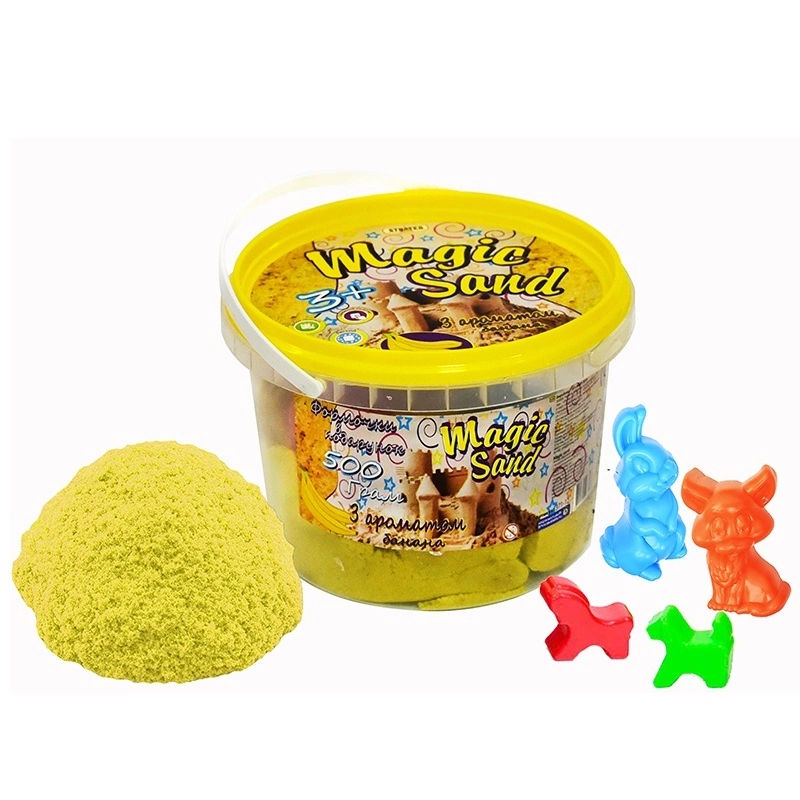 Magic sand жовтого кольору, з ароматом банану, у відрі 0,500 кг
