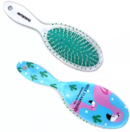 Масажна щітка для волосся №9717-2 пл. з рис. Фламінго чор. у кл. овал. (240)