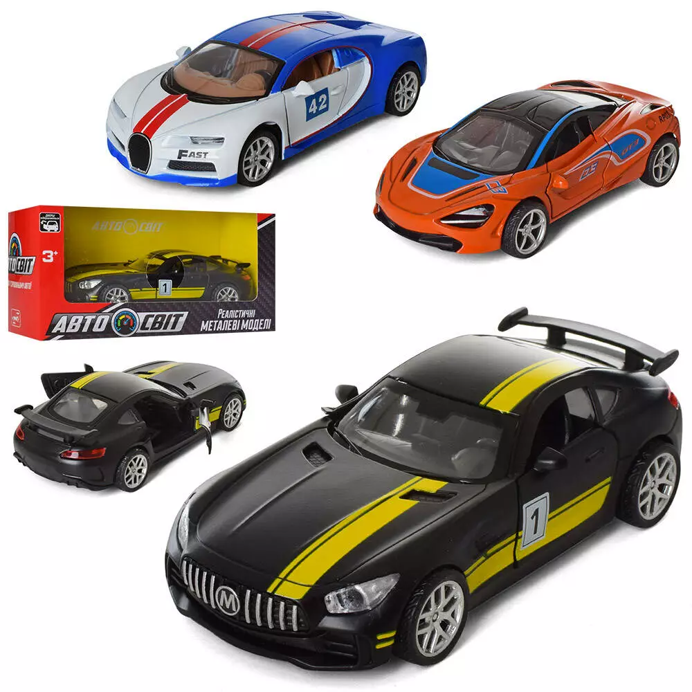 Машина AS-2457 АвтоСвіт, мет., інерц., гум. колеса, відчин.двері, 4 види, кор., 15,5-7,5-6,5 см.