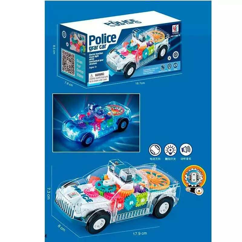 Машина YJ388-70 поліція, шестерні, їздить, 2 режими, муз., світло, бат., кор., 18,5-8,5-7,5 см.