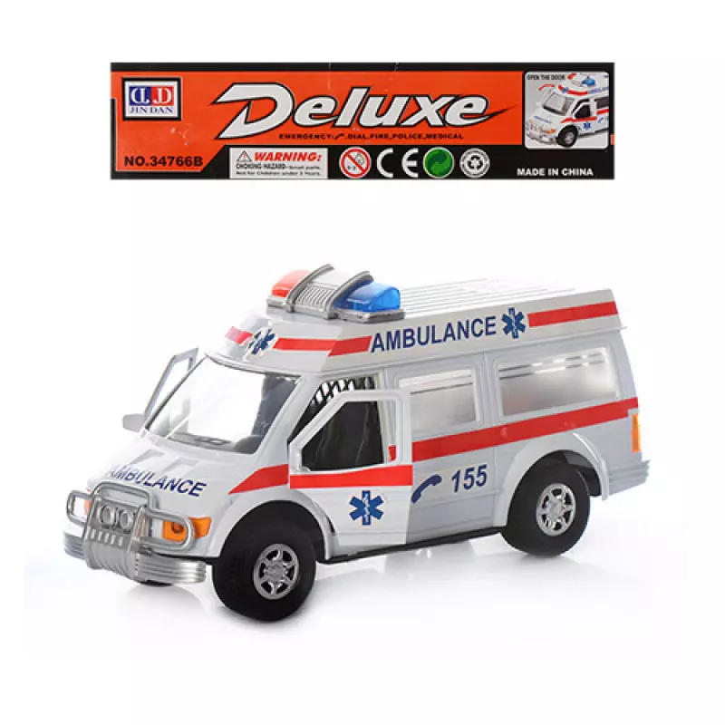 Модель автобуса "Швидка допомога", упаковка – п/е пакет. Іграшка має інерційний механізм, відчиняються двері.