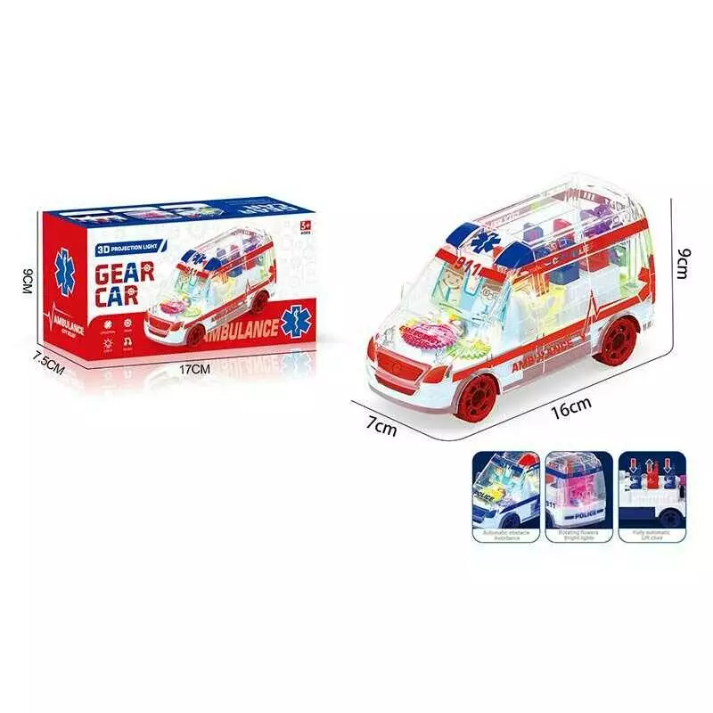 Машинка 6608-16 B (120/2) світло, звук, шестерні, прозорий корпус, рухомі елементи, в коробці