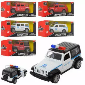 Машинка AS-1897 АвтоСвіт, мет., інерц., 1: 32, відчин. двері, 3 види (поліція/пожежна),кор.,16-7-7см