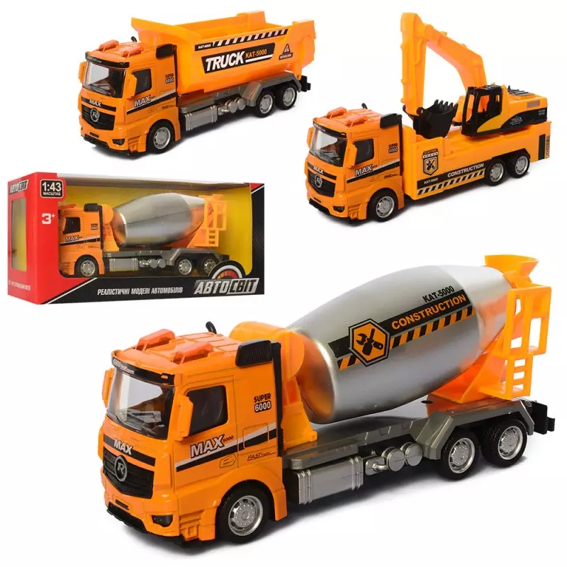 Машинка AS-2121 АвтоСвіт, мет., інерц. будтехніка, 1:43, 3 види, кор., 25-11-7 см.