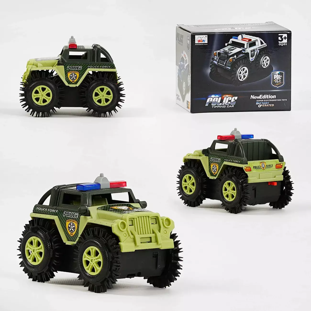 Компактна машинка поліцейської служби, яка має одну цікаву особливість - можливість здолати будь-які перешкоди та самостійно перевертатись. Прогумовані колеса незвичної форми, проблискові маячки на даху кабіни та тематичні наліпки зроблять сюжетну гру цікавою і більш реалістичною. Особливості: - компактна модель поліцейської машинки; - іграшка виконана з міцного пластика; - має тематичне забарвлення; - працює від 2-х батарейок типу "АА" (до комплекту не входять); - має специфічну форму коліс, які дозволяють іграшці долати перешкоди своєму шляху; - машинка-перевертиш.