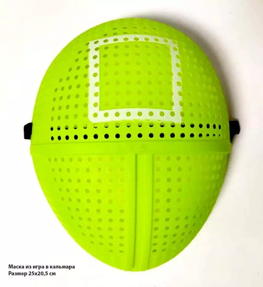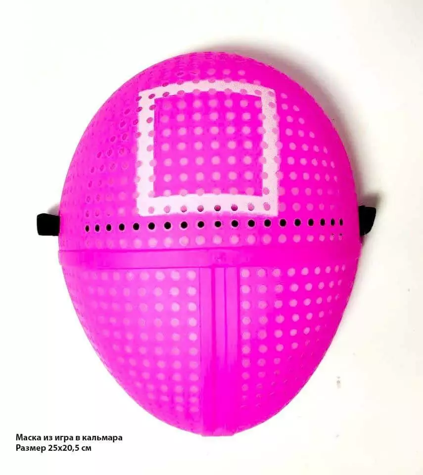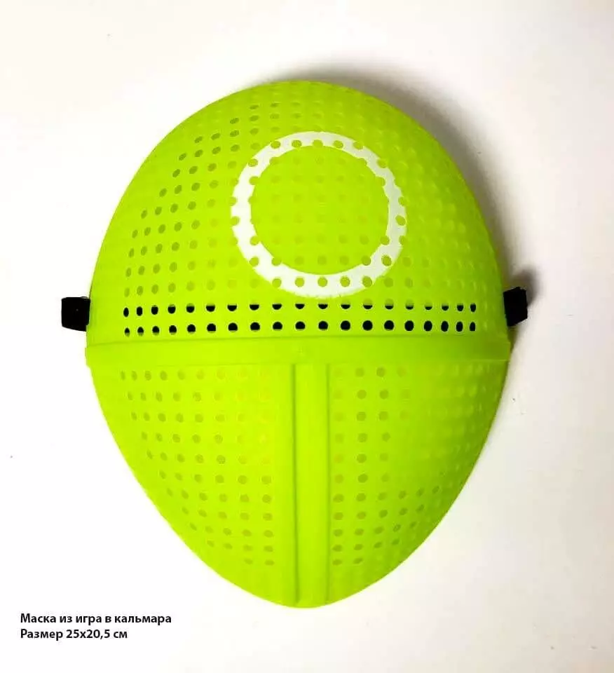 <p>Маска оформлена в стиле популярного сериала "Игра в кальмара" Светящаяся , выполнена из легкого первичного пластика, прочная, не громоздкая. 5 видов в ассортименте.<br /><br /> В сериале «Игра в Кальмара» все должности участников расписаны до мелочей и обслуживающего персонала в том числе. Об этом свидетельствуют обозначения на их масках. Так, маска Круг из сериала «Игра в Кальмара» была надета на людей, занимающихся хозяйственными делами – готовкой, уборкой тел, обслуживанием аттракционов и новых испытаний. «Квадраты» наблюдают за другими рабочими и игроками.</p><br /> <br /> <p> </p><br /> <br /> <p><iframe frameborder="0" height="315" src="https://www.youtube.com/embed/m4TntYvjOT0" title="YouTube video player" width="560"></iframe></p><br />