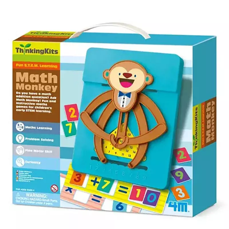 4М Мавпочка-математик - це STEM-набір для вивчення принципів додавання та множення у веселий і цікавий спосіб. Призначений для дітей від чотирьох років. Зроблено в Китаї. Як користуватися Мавпочка-математик готова допомогти вам у розв'язанні будь-яких арифметичних прикладів на додавання та множення. Виконувати домашнє завдання з математики ще ніколи не було так весело! Жовтий трикутник із цифрами допоможе в розв'язанні прикладів на додавання, рожевий - на множення. Просто розмістіть ноги мавпочки на двох цифрах, і тоді в її руках з'явиться правильна відповідь! Такий набір не тільки полегшує освоєння основ математики, а й розвиває навички розв'язування проблем, дрібну моторику та допитливість. Мавпочка-математик допоможе вашій дитині зробити перші кроки у великий світ STEM. Кому подарувати Набір рекомендований дітям від 4 років і старше. Його основне призначення - допомогти вивчити основи додавання та множення, тому гра буде особливо корисною для дошкільнят та учнів молодшої школи. Про виробника Науково-пізнавальні набори 4М - це простий і цікавий спосіб вивчення різноманітних фізичних явищ, принципів конструювання та застосування альтернативних джерел енергії. Найкраще такі набори пасують дітям шкільного віку, адже саме в цей час вони неабияк допитливі та прагнуть дослідити увесь світ у найкоротші терміни. В асортименті виробника ви знайдете цікаві набори для дослідження природних явищ, проведення експериментів, конструювання роботів і механізмів тощо. Характеристики Габарити 240 ? 220 ? 60 мм Вік від 4 років Комплектація STEM-набір 4М Мавпочка-математик - 1 шт. Інструкція - 1 шт.