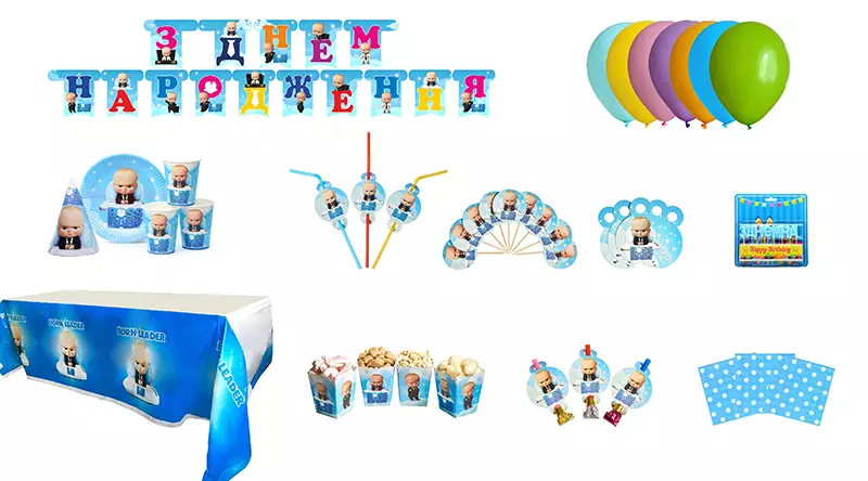 Мега-набір “З Днем народження” на 10 осіб в стилі “Бос Молокосос”