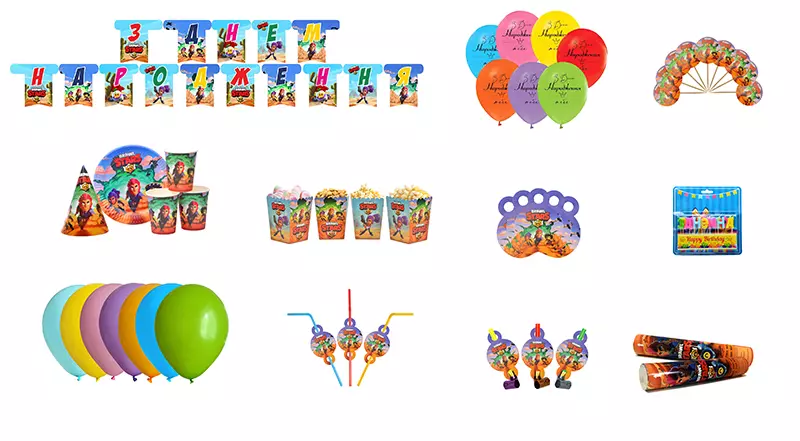 Мега-набір “З Днем народження” на 10 осіб в стилі “Бравл”