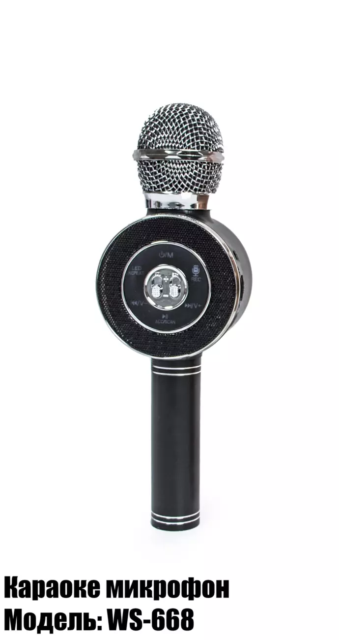 Портативний бездротовий мікрофон-караоке, який зручно носити із собою Wster WS-668. Технологія Bluetooth знижує споживання енергії, забезпечує стабільне з'єднання та швидше передає сигнал, ефективна дальність дії бездротового зв'язку до 10 метрів. Підходить для поїздок, пікніків, вечірок, сімейних розваг, співів у караоке тощо. Сумісний з більшістю мобільних телефонів та планшетів. Особливості: - Бездротовий зв'язок по Bluetooth універсально сумісна з Android, iOS телефонами - Трирівневе придушення рівня шуму в головці мікрофона, спрямований мікрофон - Унікальна технологія зміни голосів 4 Type Voice Convertor - Динамічний підсвічування Disco Light із зовнішнього боку модуля (колонки) - Програє музику смартфону і дозволяє співати під них, записуючи свої композиції (вбудований слот для карти пам'яті для запису музики у форматі MP3) - Ви можете вибирати різні звукові ефекти (наприклад, луна), зручне розташування кнопок для регулювання режимів - Функція вбудованого FM-радіо корисно доповнює і без струму широкий функціонал портативної караоке системи - Компактний і досить легкий мікрофон легко поміщається в невелику сумку - Можна використовувати як звичайну портативну колонку для програвання музики зі смартфона або планшета - Модель має роз'єм для підключення навушників (зручно для людей, що займаються вокалом) - Сучасний протокол Bluetooth 4.0 забезпечує зниження споживання енергії при більш стабільному з'єднання та швидкості передачі сигналу на відстані до 10 метрів - Алюмінієвий корпус захищений від ударів і падінь сприяє високій якості звучання та кращим басам, три стильні забарвлення - Широкий спектр застосування: для пікніка, поїздки, вечірки, сімейні розваги, співи в караоке та і т.д.
