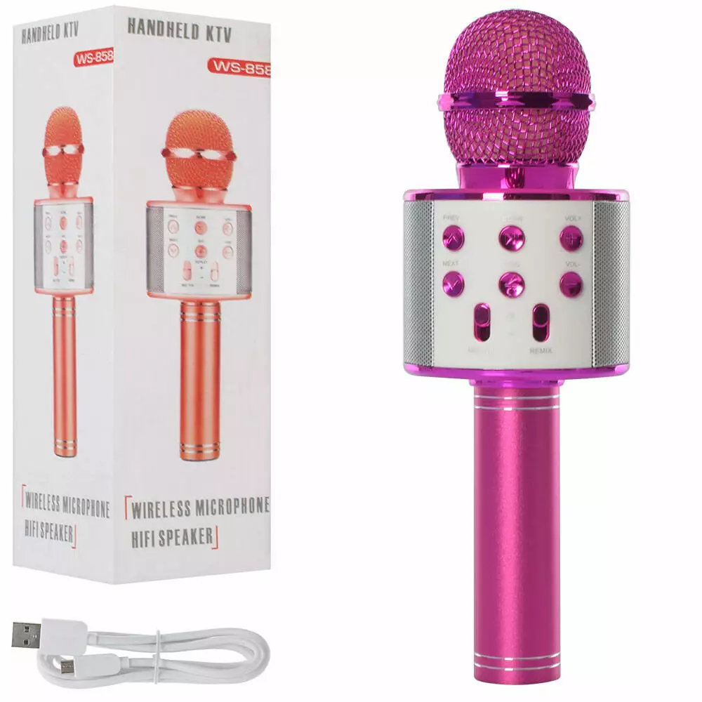 Мікрофон WS858-pink HQ акум., Bluetooth, TFслот, USBвхід, USBшнур, рожевий, кор., 8-23,5-9 см.