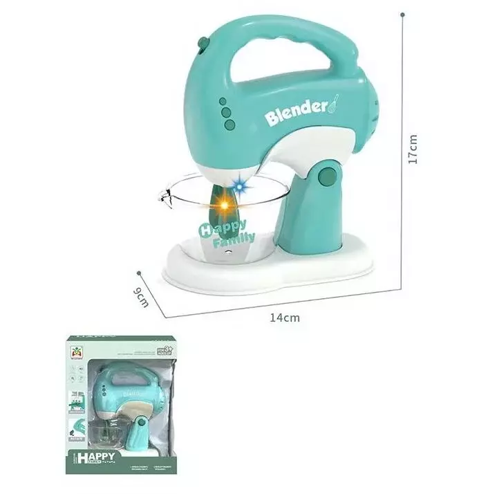 Міксер “Happy Family” - це чудова іграшка, створена розвивати творчу фантазію у дітей і дарувати малечі багато годин цікавої гри. Вона стимулює їхню цікавість до кулінарної справи та допомагає розуміти процес приготування їжі. З цим міксером кожна дитина може уявити себе маленьким шеф-кухарем і насолоджуватись веселими кулінарними пригодами. Особливості: - яскраве підсвічування; - міксер оснащений вінчиками, які обертаються під час роботи, що створює реалістичний ефект змішування; - тип живлення: 2 батарейки “АА” (не додаються); - рухомі елементи; - приваблива колірна гама, яка одразу привертає увагу дітей; - міксер виготовлений з високоякісних, безпечних матеріалів, що відповідають нормам безпеки для дітей; - має гладку поверхню та немає гострих країв, що робить його безпечним для використання.