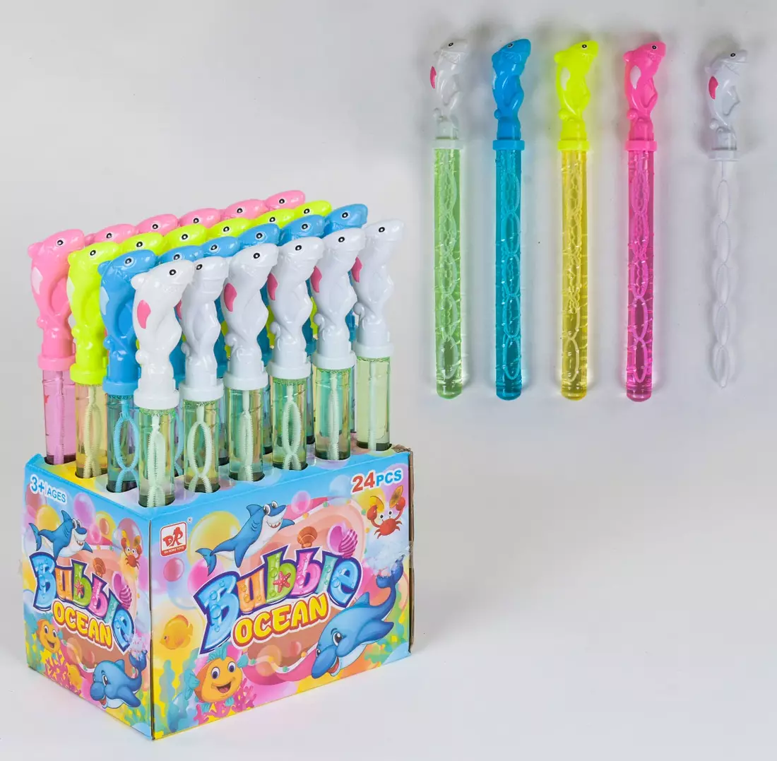 Мильні бульбашки – це завжди радість та веселощі для дітей! Історія виникнення такої гри бере свій початок вже дуже давно. Мильні бульбашки 889-17 - це бульбашки, флакончик яких виконаний у формі дельфіна. Стрижень бульбашок з отворами для видування кульок кріпиться до пляшечки з рідиною. Нині мильні бульбашки – це неймовірно популярна іграшка, яка може захопити не тільки дитину, а й дорослу. Подаруйте собі та своєму малюкові багато позитиву разом із такою захоплюючою грою. У блоці міститься 24 флакончики зеленого, синього, жовтого та рожевого кольорів.