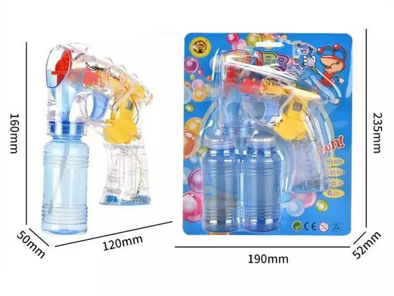 Пістолет з мильними бульбашками MY 166-2 D (60/2) підсвічування, 2 пляшечки з мильним розчином, від батарейок, на листі