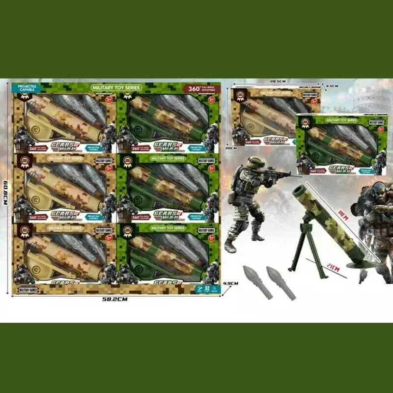 Міномет 729-37 (18) ЦІНА ЗА 6 ШТУК В БЛОЦІ, механічний принцип роботи, 2 снаряди, підставка, в коробці