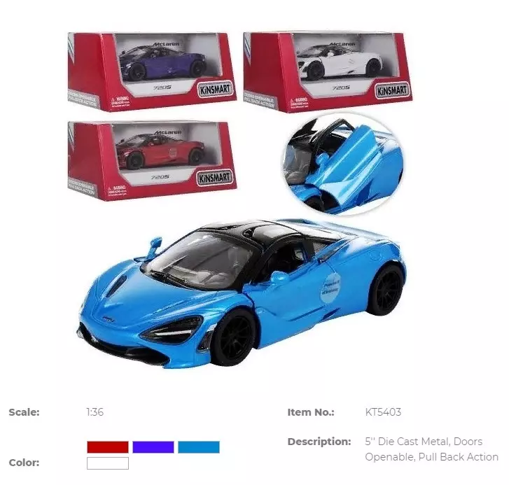 Модель легкова MCLAREN 720S 5'' KT5403W метал.інерц.відкр.дв.4кол.кор./96/