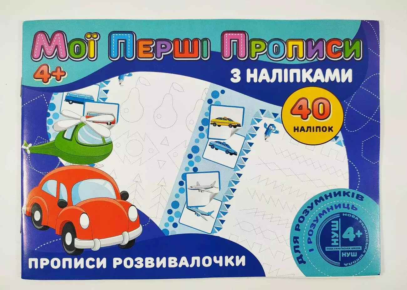 Найперші прописи для малят допоможуть освоїти написання своїх перших цифр. Пропис виготовлений з якісного паперу. А чіткість контурів, з'єднуючих ліній, штрихів та різноманітних малюнків проявлять у малечі цікавість до навчання, розвиватимуть посидічість та концентруватимуть їхню увагу Формат А5 Обкладинка папір крейдований 130 грам. Внутрішній блок папір офсетний 70 грам. 40 наліпок.