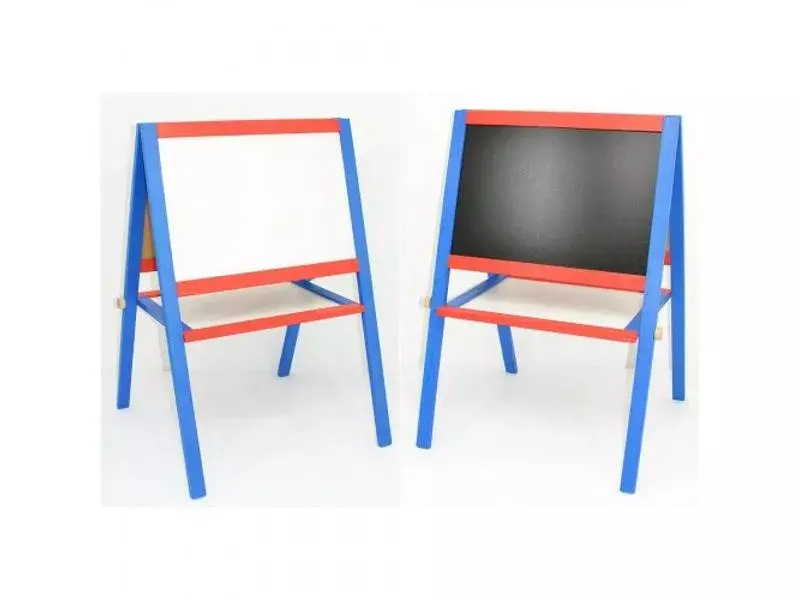 Розмір виробу ДхШхВ см - 60х40х100 Дитячий дерев'яний підлоговий двосторонній мольберт з магнітною дошкою. Мольберти необхідні та важливі предмети дитячих меблів для творчого розвитку дитини. На ньому можна малювати та писати, грати з магнітами та складати перші слова. За допомогою мольберта дошкільнята вчаться ще вдома читати і рахувати, а потім, ставши вже школярами, часто люблять грати «в школу» вдома, викликаючи дошці-мольберту неслухняних учнів. Ніхто не заперечуватиме важливість якісних меблів для наших дітей, тому ми пропонуємо дошку для малювання власного виробництва з натурального чистого матеріалу – дерева. Мольберт має дві робочі поверхні: темну грифельну та білу магнітну.