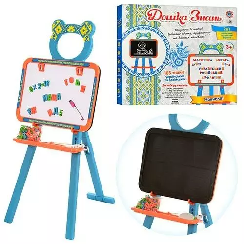 Мольберт JT 0703 UK двосторонній, дошка, букви, цифри, крейда, губка, маркер, кор., 46-40,5 см.