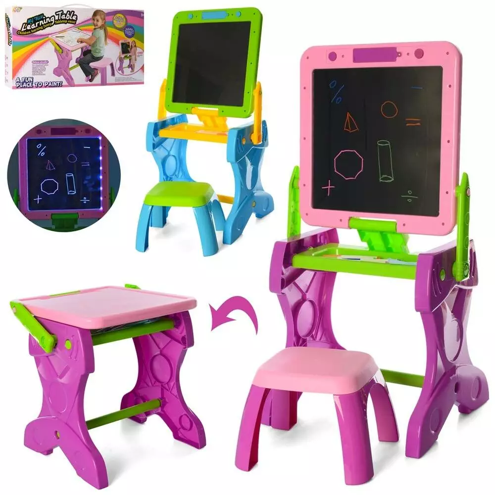 Мольберт YM881-882 2в1 (дошка для малюв./столик), маркери, світло, бат., кор., 67,5-37,5-9,5см.