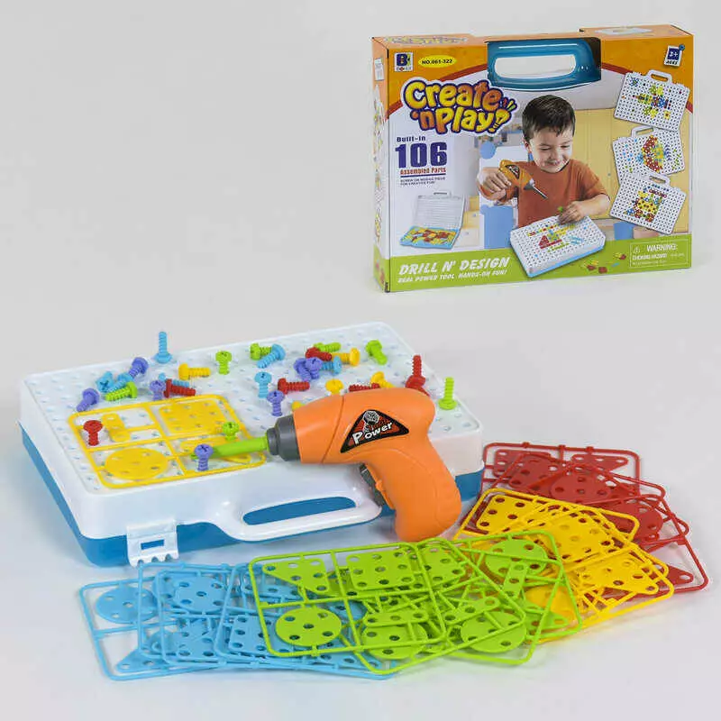 Мозаїка-конструктор 661-322 (20) шурупокрут, на батарейці, 106 елементів, у валізі