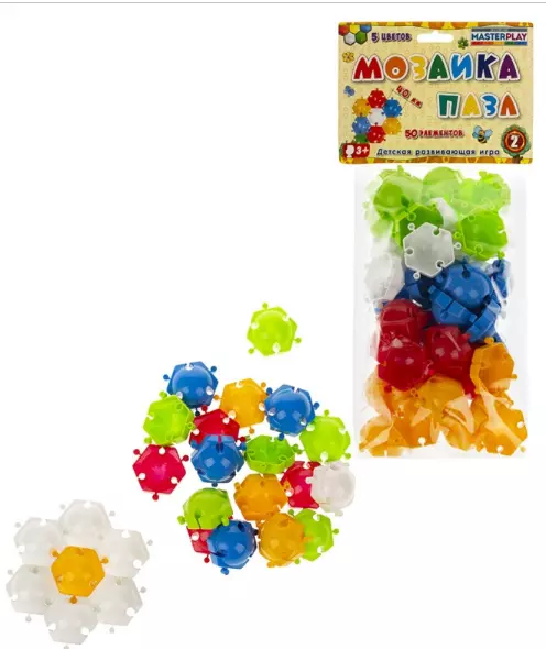 Мозаїка-пазл D=40 мм No2 (50 шт.) – набір яскравих, різнокольорових (5 кольорів) шестикутних елементів-пазлів, що легко з'єднуються між собою на плоскій поверхні. З їх допомогою можна скласти різні фігурки тварин і чоловічків, квіти, будиночки та все, що підкаже фантазія! Таке, на перший погляд, невигадливе заняття грає величезну роль у розвитку дитини: малюк навчається мислити образами, фантазувати, тренує дрібну моторику рук. Розмір елементів продуманий виробником і унеможливлює небезпеку для дитини випадково проковтнути деталь мозаїки в процесі гри. Всі деталі мозаїки виготовлені із якісного, безпечного для здоров'я пластику. У комплекті пластикові елементи (D=40 мм) 50 шт.