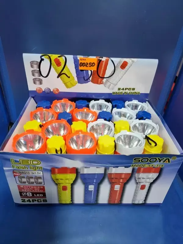 Брелок виконаний із пластику у вигляді ліхтарика. В упаковці різні кольори корпусу ліхтариків. Працює від пальчикової батареї.