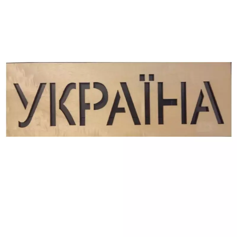 Трафарет прямокутної форми являє собою напис "Україна".