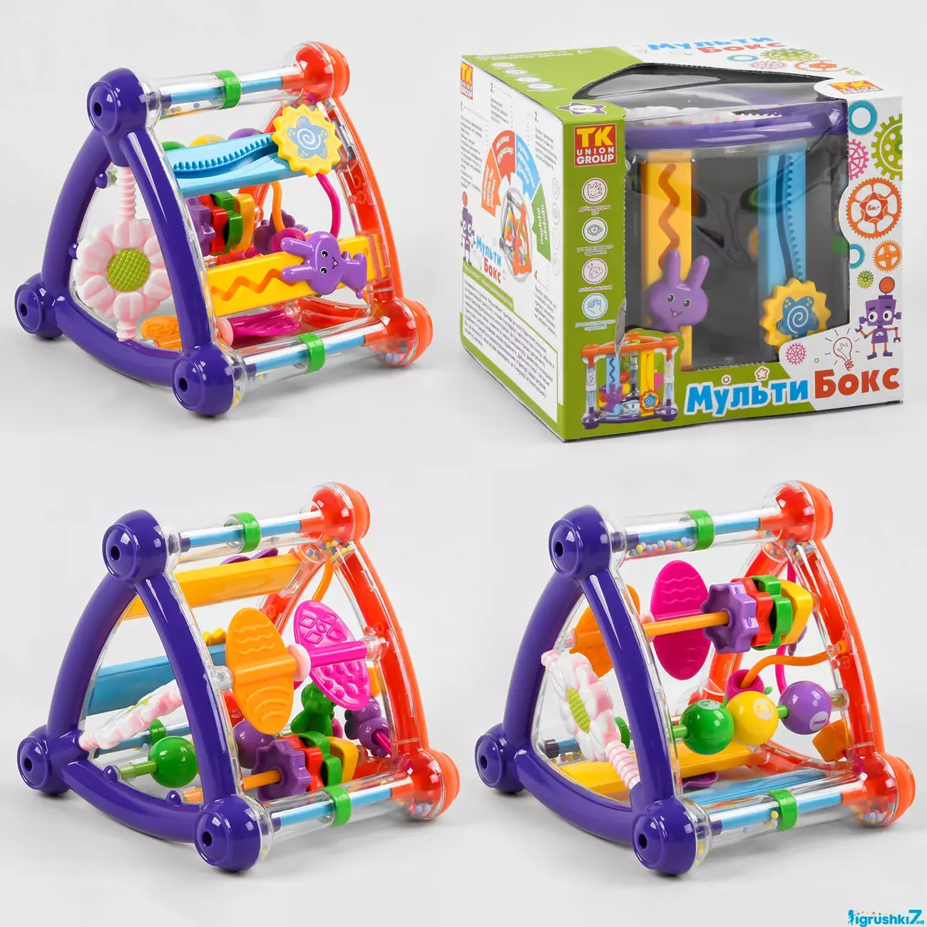 Мультібокс 65590 (12/2) "TK Group", брязкальце, пальчиковий лабіринт, дзеркало, рахунки, тренажер для зап'ясть, в коробці