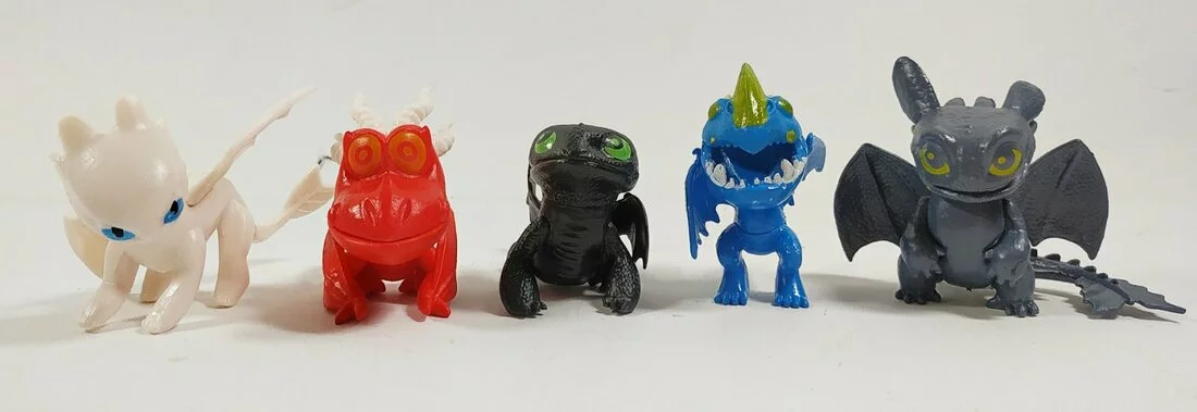 Дитячі іграшки зроблені у вигляді гумових драконів з софт-тач покриття, яке робить дракончиків приємними на дотик. Довжина іграшки Big Dragon становить 9 см, а ширина 6 . На аркуші зібрано 5 види мультяшних динозаврів. В набір входить пластина із зображенням динозавра героя мультфільму.
