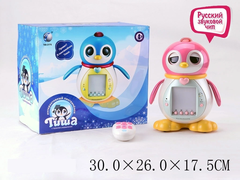 Опис: Багато дітки мріють про милу собачку або ласкавого кошеня. Але є й такі хлопці, які мріють мати в якості вихованця незвичайне тварина, наприклад, слоненя, динозаврика або пингвинчика. Саме для таких фантазерів підійде інтерактивний навчальний пінгвін «Тиша». Він стане найкращим другом для Вашого малюка, адже вихованець вміє розмовляти та розуміти сказані Вами слова! Крім того, він навчить дитину різним считалочкам, пісеньки, римівки та навіть алфавітом. На животику інтерактивного тварини є кольоровий екранчик, переливається різними відтінками. А ще, Тиша вміє рухати крильцями, моргати очима і любить загадувати загадки. На нижній панелі ви знайдете кнопки регулювання гучності і перемикання швидкості. Пульт дозволяє дистанційно встановити одну з 12 команд для іграшкового робота. Щоб іграшка відтворювала улюблені казки і мелодії Вашої дитини запишіть їх на USB флеш-карту, для якої є спеціальний вихід на спині пінгвіна. Роз'єм під навушники допоможе дитині грати з ним, не заважаючи оточуючим. Детальний опис всіх ігрових функцій в прикладеній інструкції. Характеристики: • Тип: Інтерактивні тварини • Вік: від 3 років • Матеріал: Високоякісні полімерні матеріали • Працює від пульта ІЧ-управління • Іграшка живиться від 5 батарейок типу АА (не входять в комплект) • Пульт живлять 2 батарейки типу АА (не входять в комплект) • Звукові та світлові ефекти • Вміє співати, танцювати, розповідати казки, вірші, лічилки і багато іншого • Є можливість підключити USB-накопичувач і навушники • Мова: російська • Поставляється в коробці розмірами 30Х26Х17 см • Розміри іграшки вказані параметри • Поставляється в рожевому і синьому кольорі Комплектація: 1 інтерактивний пінгвін, 1 пульт управління, 1 навушники 1 інструкція.