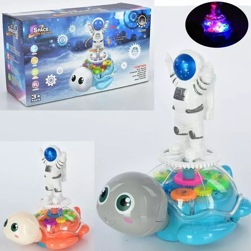 Музична іграшка 8833 черепаха, їздить, шестерні, фігурка, 2 кольори, муз.,світло,бат.,кор.,26-14-9см