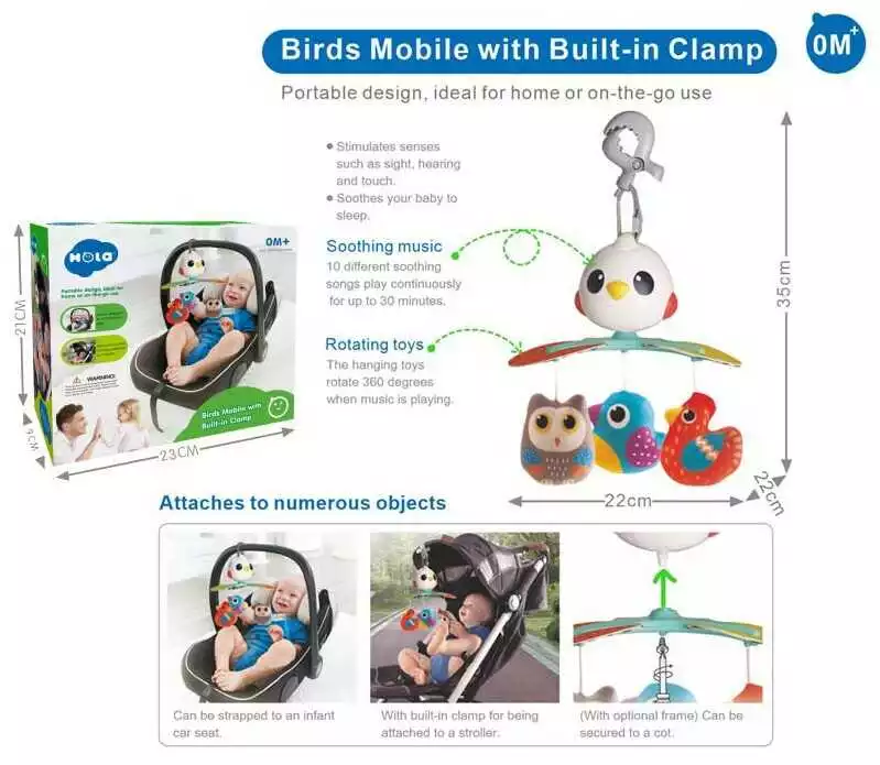 Музична карусель E 995 A (12) ""Hola"", ""Пташка"", мелодія, автоматичне обертання, в коробці