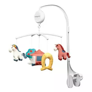 <p>Мобіль для дитячого ліжечка з електронною музичною скринькою, BALLOONS ідеальний для малюка, що полегшує засинання. Постійний рух заспокоює, а ніжний звук музичної скриньки заколисує малюка. Завдяки універсальному кріпленню мобіль можна встановити як на туристичне, так і дерев'яне ліжечко.</p><p>Мобіль дозволяє спостерігати за рівномірним рухом предметів, удосконалюючи почуття зору малюка.<br>Барвисті іграшки, прикріплені до мобеля, дають малюкові почуття безпеки та допомагають розвивати уяву, створюючи унікальну історію про пригоди коників у стайні.<br>Чотири функціональні кнопки: увімкнення/вимкнення, прокручування мелодій та регулювання гучності.<br>Механізм з батарейним живленням забезпечує безперервне прослуховування та регулювання гучності.<br>Технічні характеристики<br>Матеріал: (мобіль) пластик, (іграшки) поліестер<br>Вага: 0,75 кг<br>Призначено для дітей віком від 0 місяців (0м+)<br>Вимагає використання двох батарейок АА (не додаються до набору)</p>