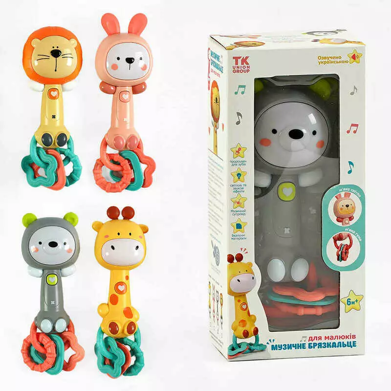 Музичне брязкальце 21373 (120) ""TK Group"", 4 види, ОЗВУЧУВАННЯ УКРАЇНСЬКОЮ МОВОЮ, 5 пісень, прорізувач, підсвічування, у коробці, ВИДАЄТЬСЯ МІКС ВИДІВ