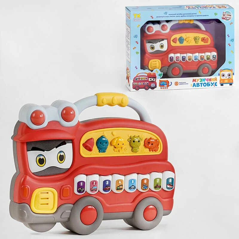 Музичний автобус 91780-1 (72) ""TK Group"", ОЗВУЧУВАННЯ УКРАЇНСЬКОЮ МОВОЮ, червоний колір, 4 режими, 4 мелодії, звук, світо, в коробці