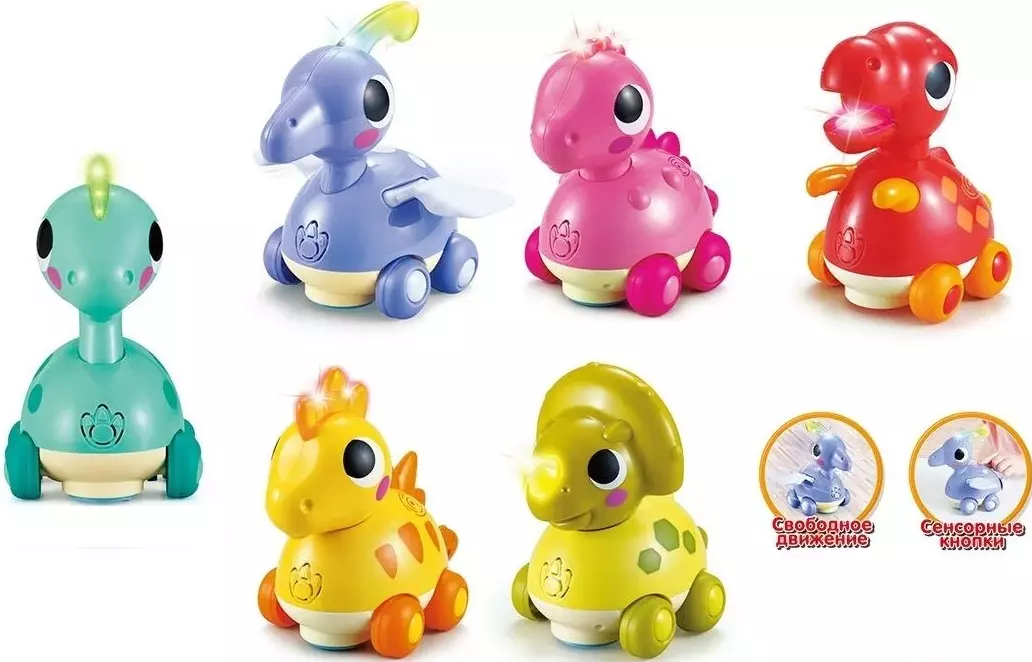 Високоякісні іграшки-машинки для найменших – динозаври 7709. Машинки у формі динозаврів обов'язково привернуть увагу і розбавлять час веселощами. Адже їхній зовнішній вигляд дуже яскравий, деталізований і миловидний. Кожен динозаврик у серії має особливі риси, у когось є крила, хтось покритий лусочками, а у когось маленькі рухливі ручки. Кожна іграшка виконана з первинного пластику, всі кути заокруглені, а колірна корекція обов'язково порадує Ваше око. Особливості моделі 7709: - кнопка вкл/вкл із регулюванням гучності; - Режим go/stop; - в режимі go – динозаврик починає повільно їздити та звучить весела пісенька; - в активному режимі, іграшка, у випадковий час видає звуки та підсвічується; - На спині знаходиться сенсор, якщо до нього доторкнуться, то активується випадковий звук або поїде машинка.