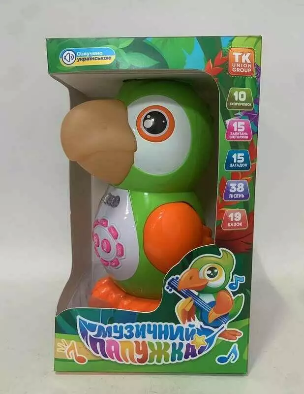 Музичний папужка 45158 (24/2) ""TK Group"", ОЗВУЧУВАННЯ УКРАЇНСЬКОЮ МОВОЮ, пісні, казки, скоромовки, загадки, вікторина, підсвічування, запис голосу, сенсорні датчики, в коробці