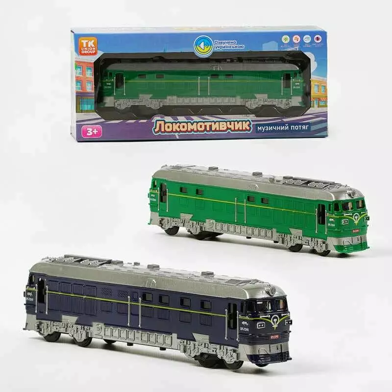 Музичний потяг “Локомотивчик” TK - 10244 (72) ""TK Group"", 4 кольори, ОЗВУЧУВАННЯ УКР. МОВОЮ, підсвічування, фрази, пісня, колесо вільного ходу, в коробці