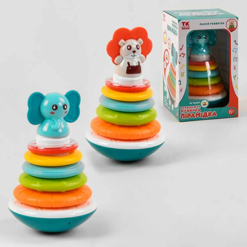 Музична пірамідка 56076 (12) ""TK Group"", 2 види, неваляшка, підсвічування, мелодії, звуки тварин, в коробці