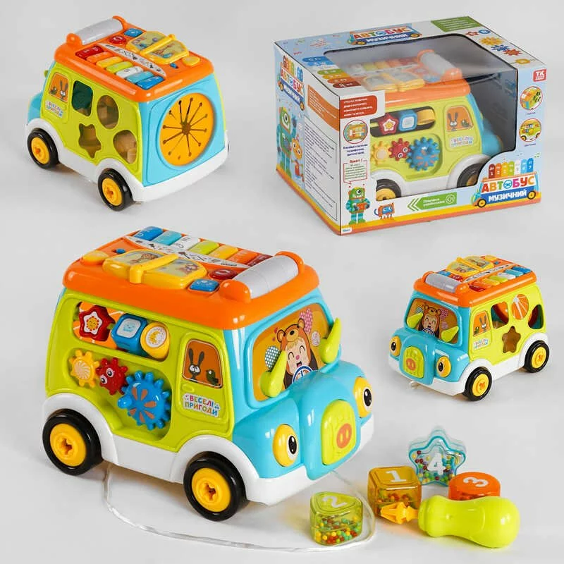 Музичний автобус 67159 (12) ""TK Group"", ОЗВУЧ. УКРАЇНСЬКОЮ МОВОЮ, підсвічування, пісні, цифри, ноти, мелодії. сортер, викрутка, каталка, в коробці